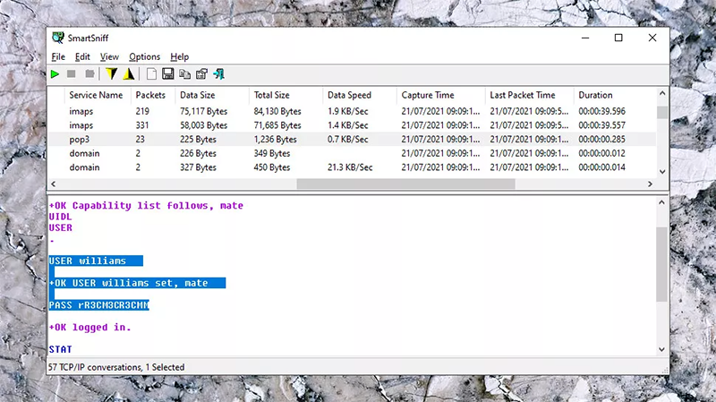با برنامه SmartSniff میتواند ترافیک بستهها، پورتها و سرویسهای مختلف را کپچر کرده و دریافت این بستهها از چه مبدایی آمده و به چه مقصدی میروند.
