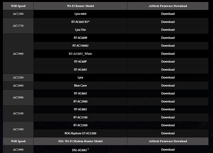 با مراجعه به صفحه AiMesh ایسوس و بررسی فهرست دستگاههایی که از این فناوری پشتیبانی میکنند؛ تنها به یک مودم ADSL/VDSL میرسیم که از AiMesh پشتیبانی میکند و آن DSL-AC68U است.