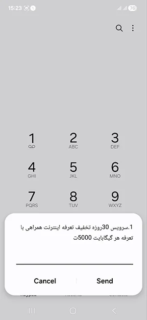 همراه اول به یک مشترک پیامک زده که در ازای ۷ هزار تومان، این سرویس را فعال میکند و به مشترک دیگری پیامک داده و ۱۷۴۰۰ تومان گفته: