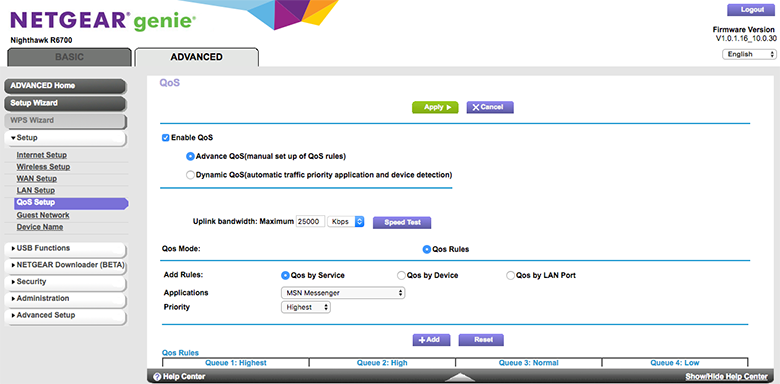 اگر یک روتر یا مودم روتر از برندهایی مانند نتگیر، ایسوس، تیپیلینک، دیلینک، لینکسیس و غیره دارید؛ میتوانید وارد پنل مدیریتی تحت وب دستگاه شده و از بخش Advanced سراغ QoS setup بروید. ممکن است تنظیمات QoS در دستگاههای مختلف کمی متفاوت باشد ولی با اندکی جستوجو میتوانید آن را پیدا کنید.
