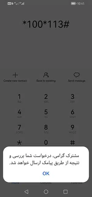 - استفاده از کد دستوری #۱۱۳*۱۰۰*