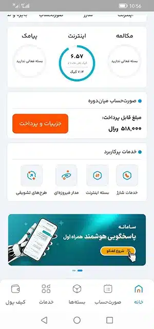 - در اپلیکیشن همراه من: رفتن به بخش «خدمات» و بعد بخش «تعرفه آزاد» و غیرفعالسازی مصرف اینترنت آزاد