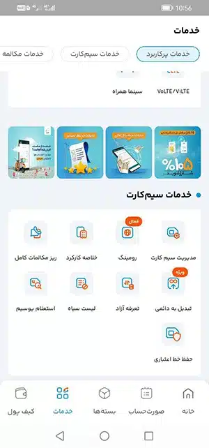 ۵- از صفحه اصلی برگه «خدمات سیم کارت» و بعد گزینه «تعرفه آزاد» را انتخاب کنید: