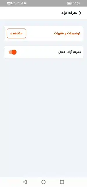 ۶- در این صفحه میتوانید به سادگی تعرفه آزاد را فعال یا غیر فعال کنید: