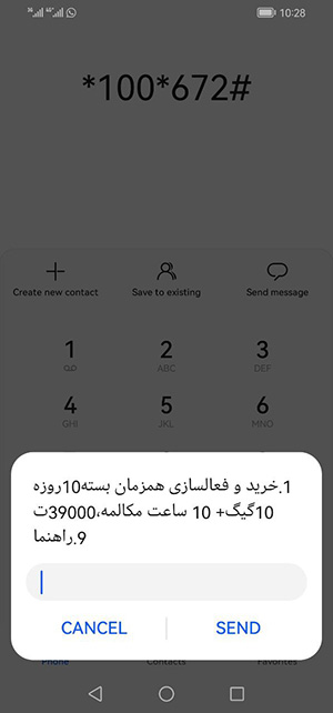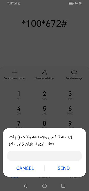 برای فعالسازی این بسته ترکیبی اینترنت و مکالمه با ۶۰ درصد تخفیف، باید کد دستوری #۶۷۲*۱۰۰* شمارهگیری شود و بعد گزینه ۱ برای نمایش اطلاعات بسته و دوباره گزینه ۱ برای فعالسازی بسته زده شود.