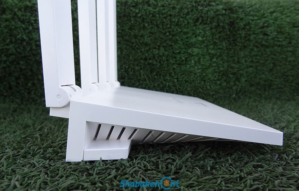 بخش زیرین مودم کاملا صاف و یکنواخت نیست و حالت زاویهدار طراحی شده که با یک پایه مانند چسبیده به بدنه، از سطح صاف فاصله میگیرد که باز به تهویه هوا کمک میکند.