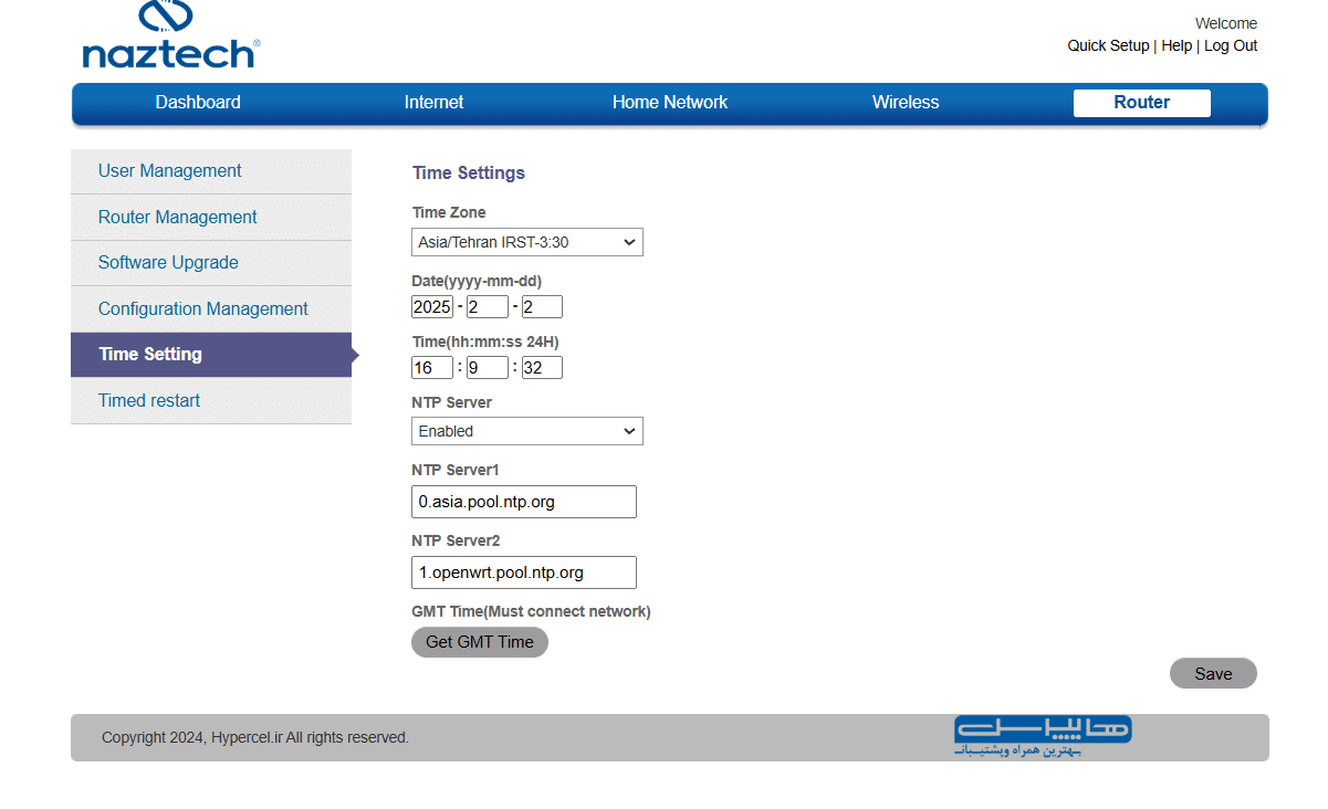 منوی آخر یا Router بیشتر شامل ابزارهای مدیریت مودم مانند ریست فکتوری، آپدیت فریمویر، زمانبندی روشن/خاموش شدن وای فای و … است: