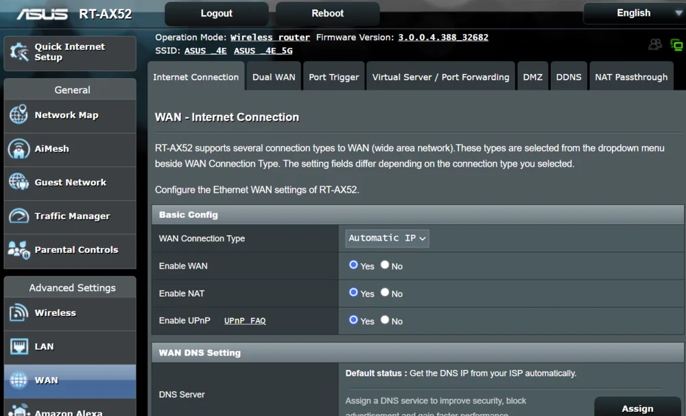 برای تنظیمات بخش WAN میتوانید روی Dual WAN ،Port triggering ،DMZ و DDNS حساب باز کنید.